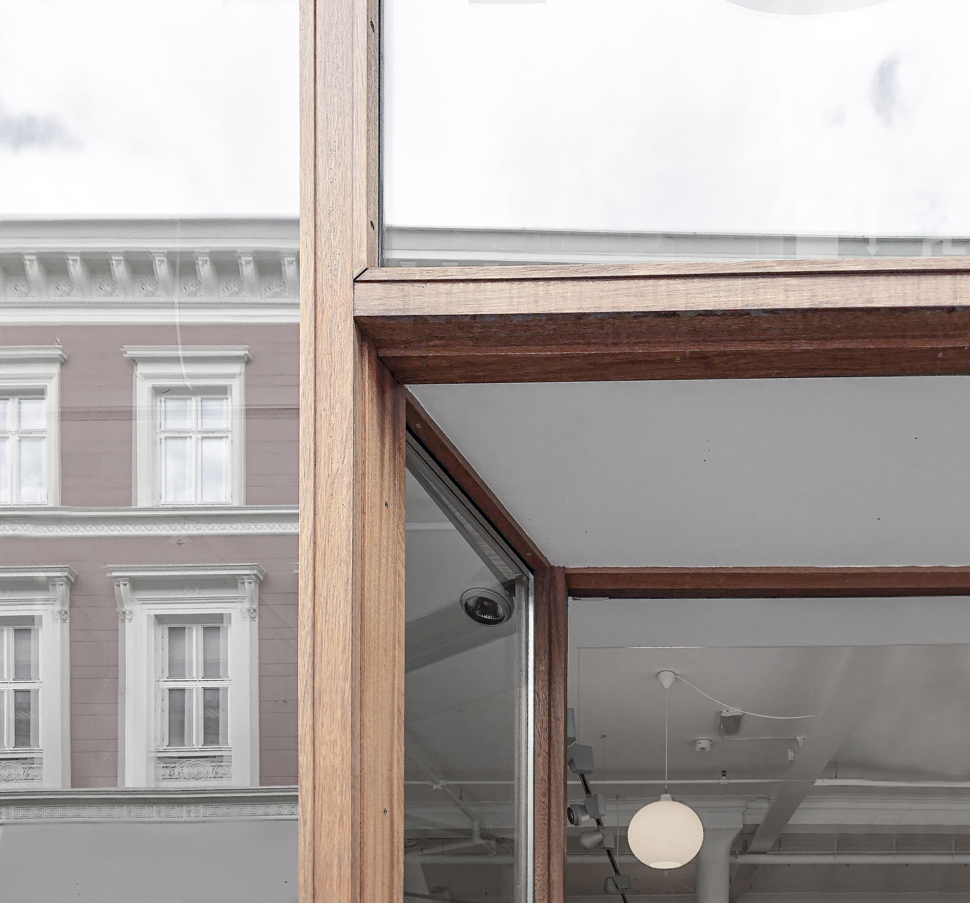 Our studio space, situated on a busy street in the heart of Copenhagen. A versatile creative space that works as office, workshop, material lab and exhibition space, where we will invite clients, collaborators and the public to take part in our creative process. Transformation and interiors for HDI Denmark in an old factory building in Copenhagen Digital Hub Denmark. Transformation of historic building to visitor center. Copenhagen. 2021 Renovation and bespoke furniture 2020. Matrikel1. Transformation of historic buildings to co-work space, cafe and bar. Copenhagen. 2017-19.